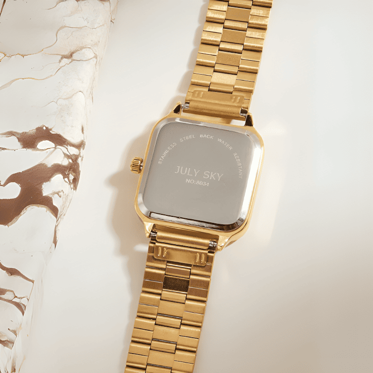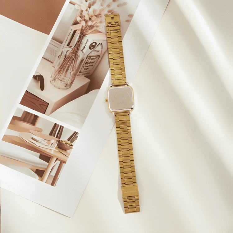 The Golden Glow of Distinction Plated in a sophisticated and radiant gold tone, this watch is not just an accessory; it is a touch of radiance on your wrist. It captures the eye not with ostentation, but with the subtle glow of confidence, perfectly complementing your every gesture.